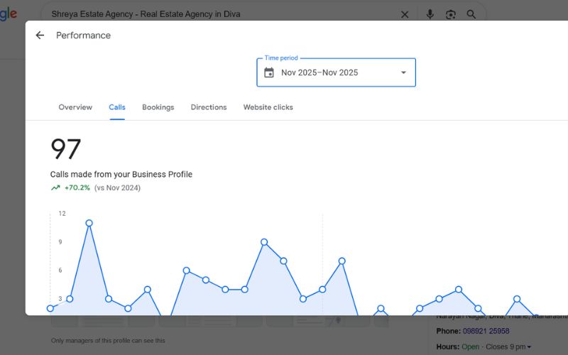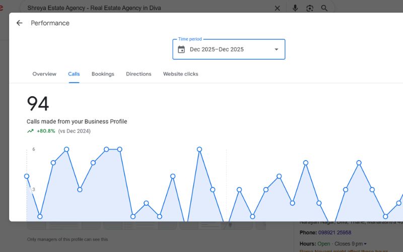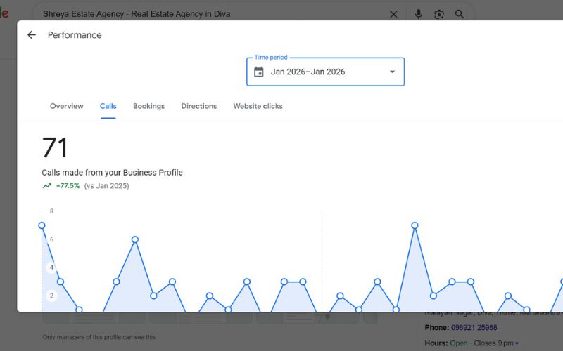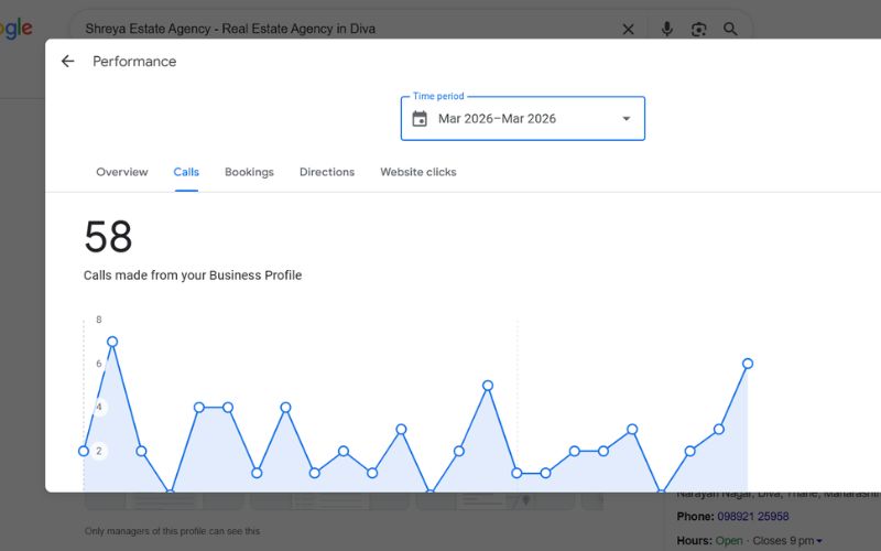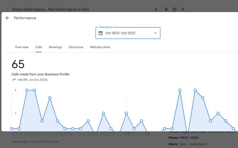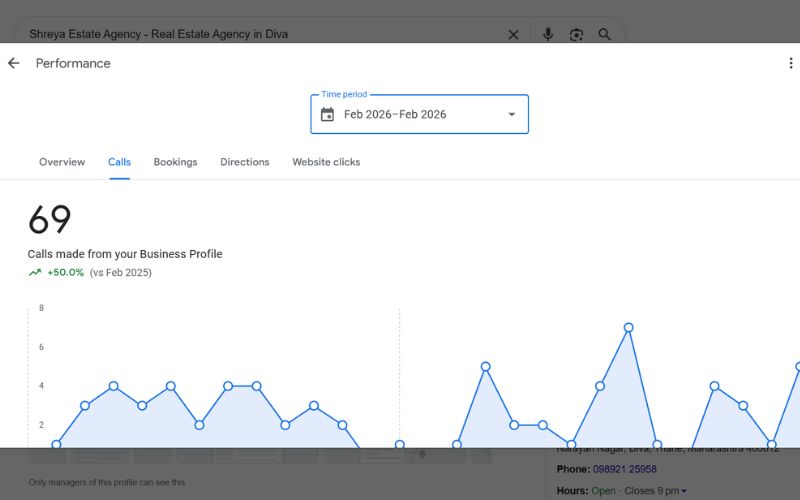 A local real estate agency in Diva, Mumbai was paying for listings on multiple platforms with no measurable ROI. After a Google Business Profile setup and focused local SEO strategy, organic inbound calls grew consistently month over month.