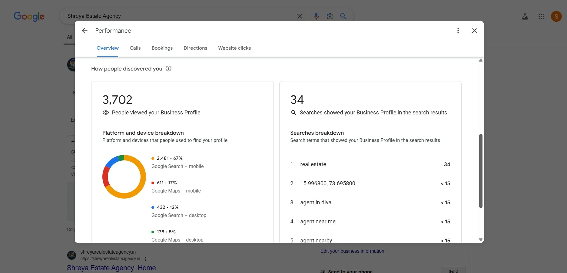 This was my first Local SEO project for a real estate agency in Diva. I created and optimized the Google My Business (GMB) profile for Shreya Estate Agency.